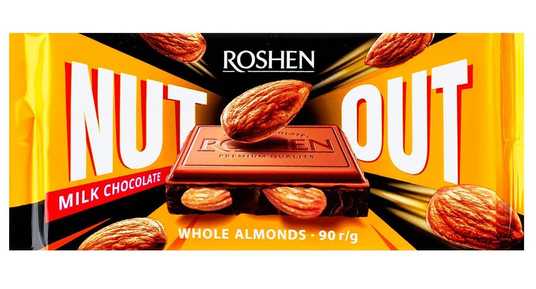 Шоколад Roshen молочний з цілим мигдалем 90г Ніжний молочний шоколад з цілими смаженими ядрами мигдалю.